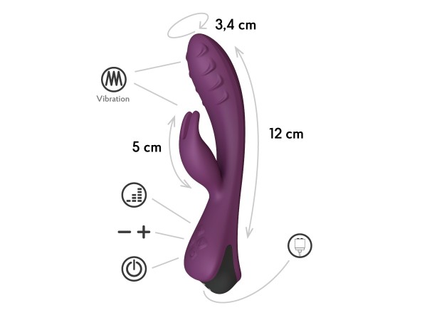 Анатомически выверенный ствол девайса с увеличенной, изогнутой и супер рельефной головкой создан для мгновенного поиска и безупречной стимуляции G зоны! Клиторальный отросток, выполненный в виде классических ушек кролика увеличит градус возбуждения и приблизит яркие оргазмы!
